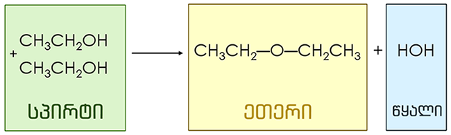 ნახ. 2 მარტივი ეთერის წარმოქმნის რეაქციის სქემა, პროცესში მონაწილე ნაერთების კლასიფიკაციით